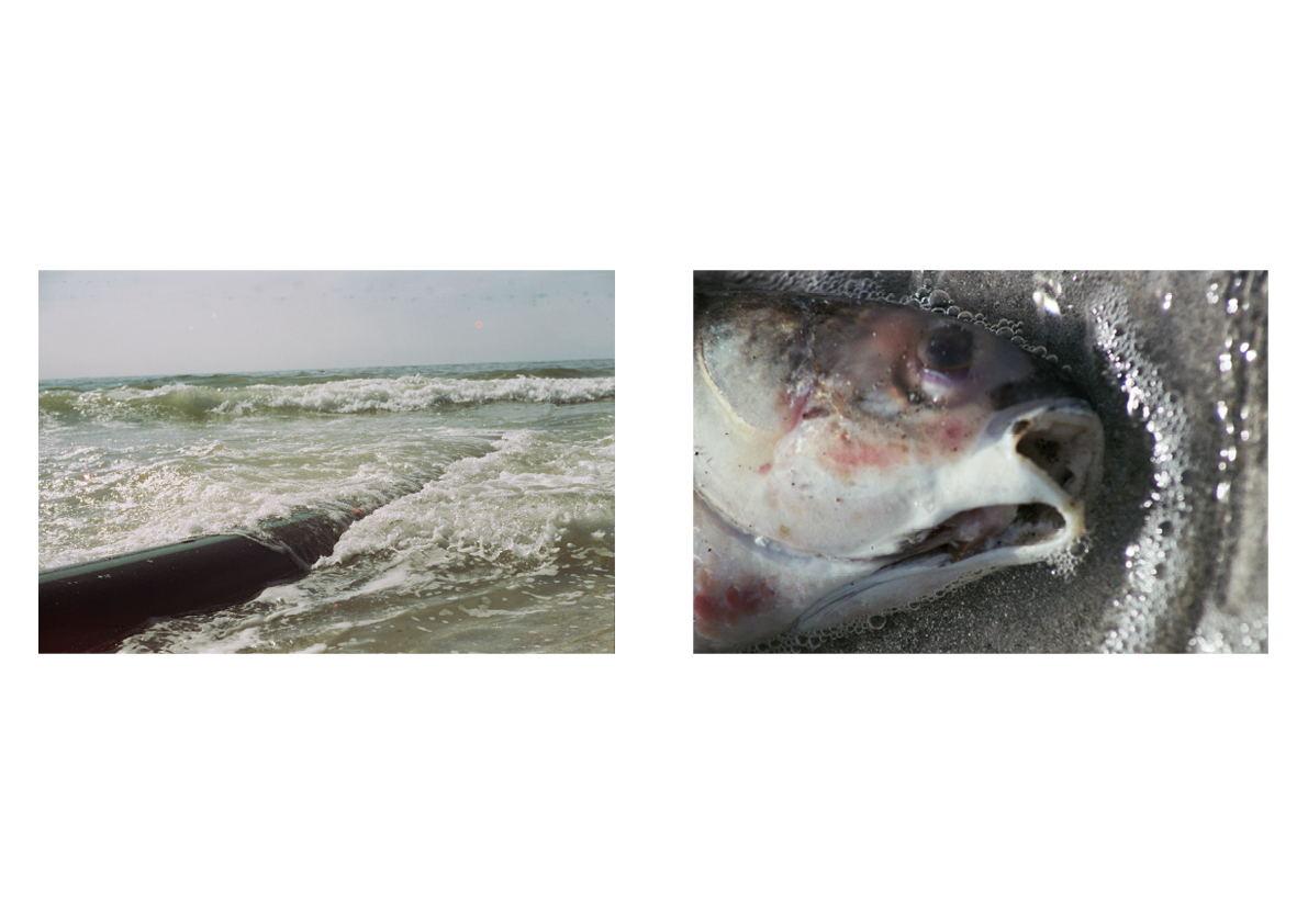 All Photographs are on 35mm film, with each image carrying physical artifacts of the disaster. In some photographs, chemical residue left on negatives echo the toxic aerosols that saturated the air. While in others, the use of expired film cause blue-toned images, evoking drowning, memory, and the sea itself.